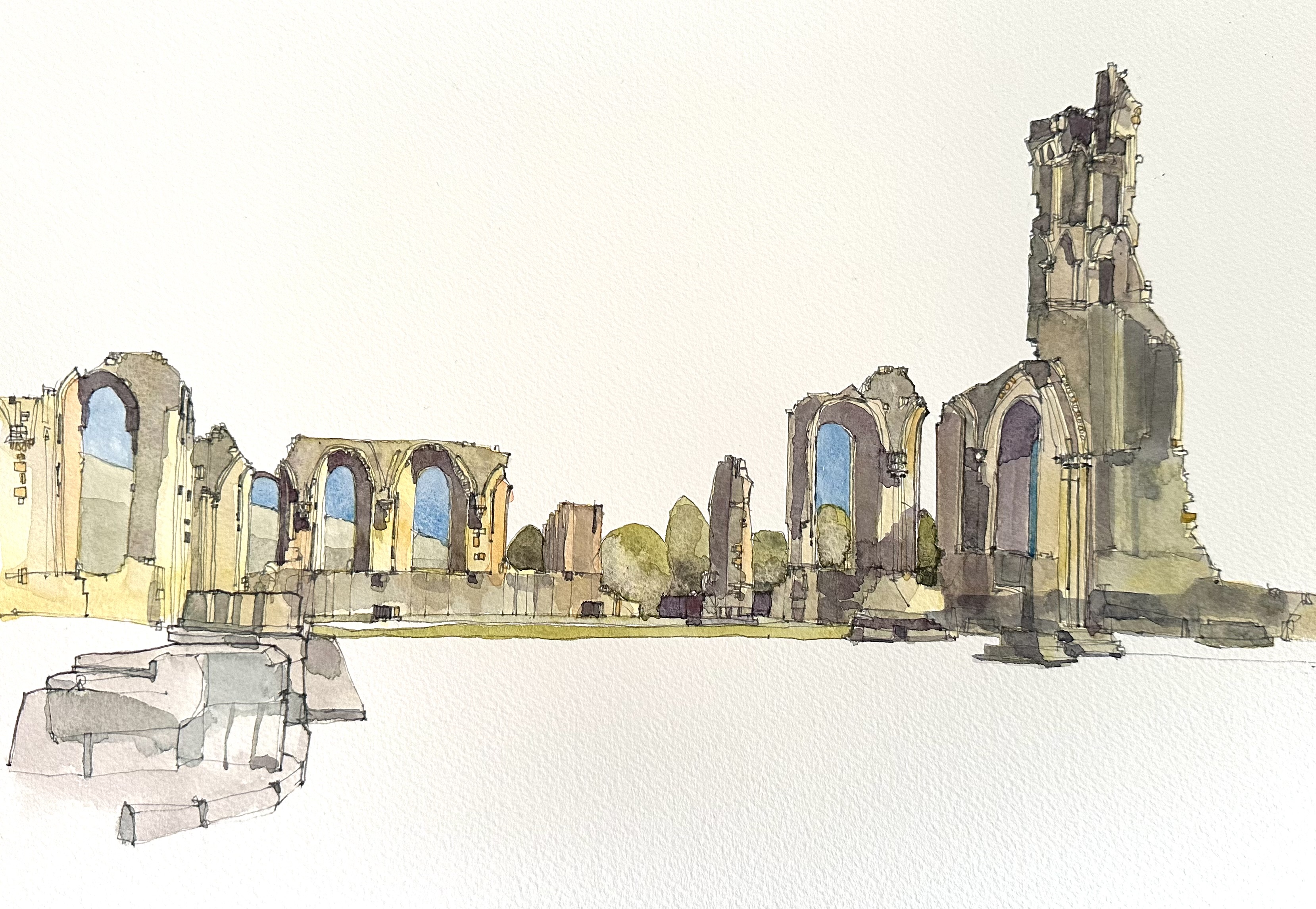 I strongly believe in leaving space in a painting. I find drawing every leaf on every tree or even, every tree isn’t necessary, it’s not about documenting everything in front of you. I like to give the viewer the opportunity to fill in the blanks for themselves and engage with the painting.
