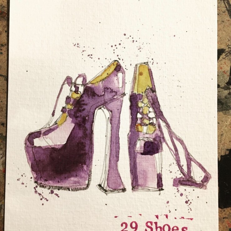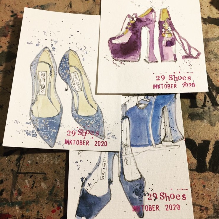 Sometimes the prompt just made me want to draw more. Day 29 being a case in point. I love shoe design and women’s shoe design in particular. I chose to draw shoes by Jimmy Choo and Vivienne Westwood which I had seen and sketched at the V&A ‘Pleasure & Pain’ exhibition in 2016.