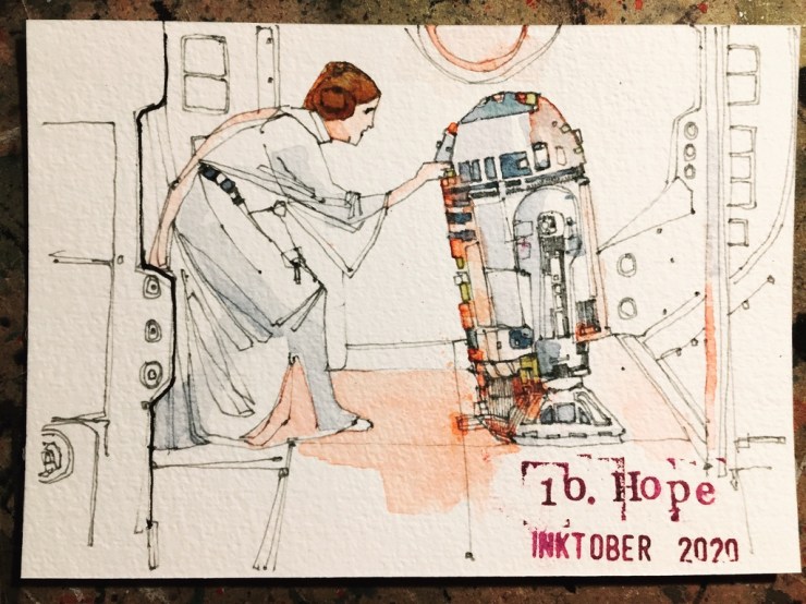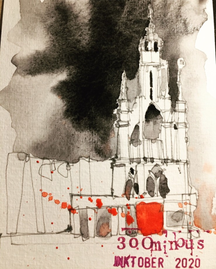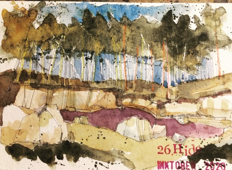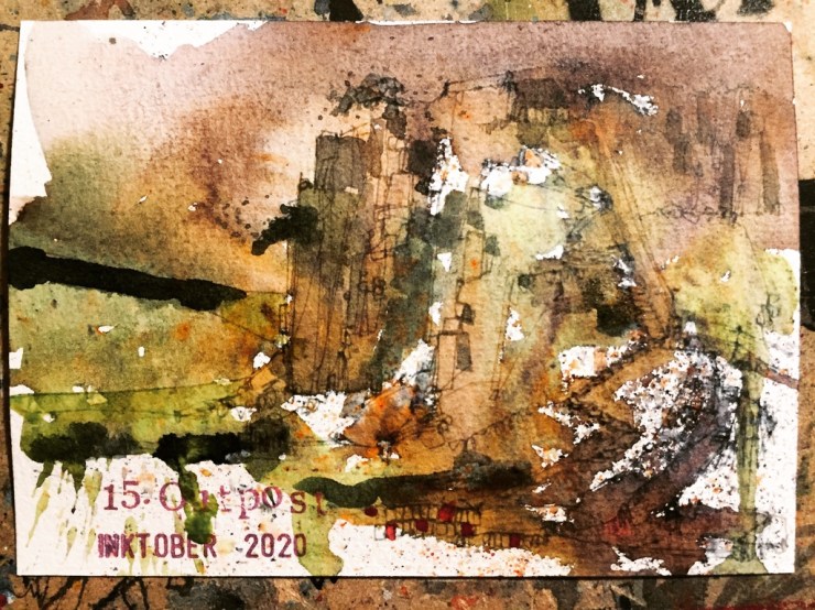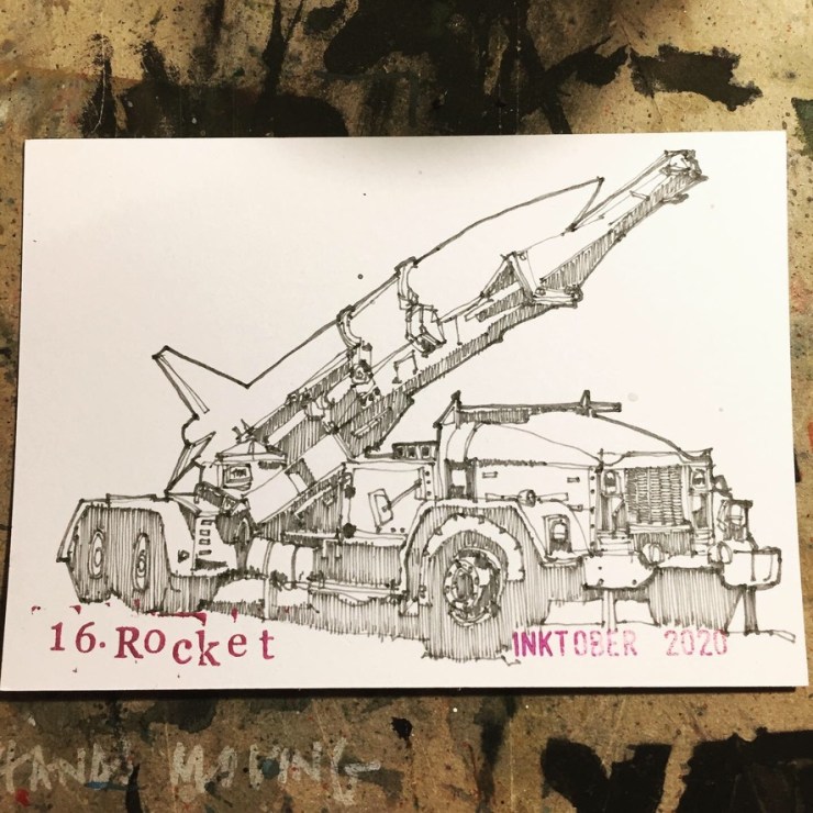 So that was Inktober 2020. Probably the one I have had most fun with. Lots of variations in style and techniques. Lots of variation in subject matter. I was a little disappointed when every postcard found its intended recipient. Although some took a long time to get there. It was a good feeling to simply send things out for free and lighten the mood in challenging times. Not once did I mention the C word!